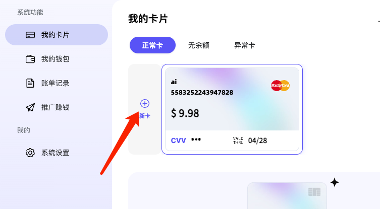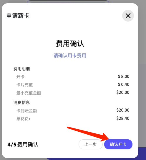 3、X的premium需要的资金为73.3U左右,但是在平台开通VISA卡需要支付8Ugas费,另外开通卡片有2%的手续费。所以充值金额86刀左右。充值完成后,点击新卡